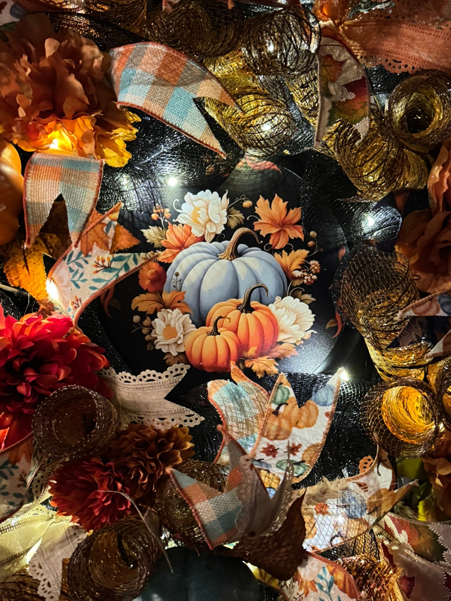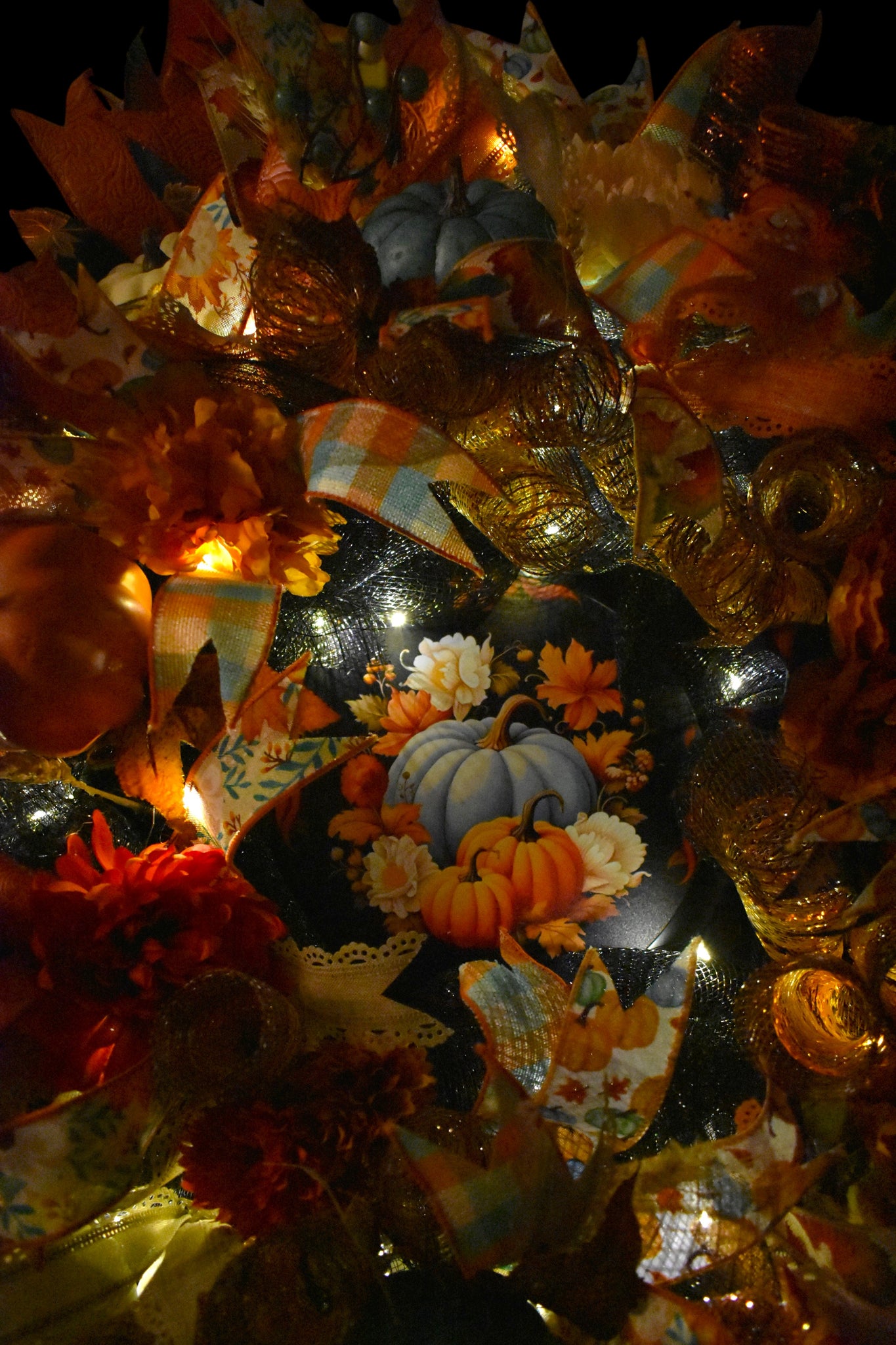 Country Fall Wreath Timer Lighted Farmhouse Style Pumpkin Welcome Wreath (Free Shipping)